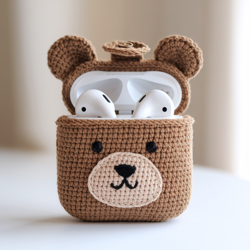 Crocheted AirPod cases are a tiny, fun way to personalize everyday tech — they protect your case from scratches, add grip, and make great gifts. Because an AirPod case is small, these projects work up fast and are ideal for trying out textures, colorwork, and tiny appliqués. Below are six distinct, detailed patterns (Bear, Strawberry, Tiny Backpack, Flower, Easy, Rabbit). Each pattern includes: Skill level • Finished size & fit notes • Materials • Gauge & sizing tips • Step-by-step construction (base + motif + lid/closure) • Finishing & assembly • Tips & variations • Care** so you can make case after case with confidence.