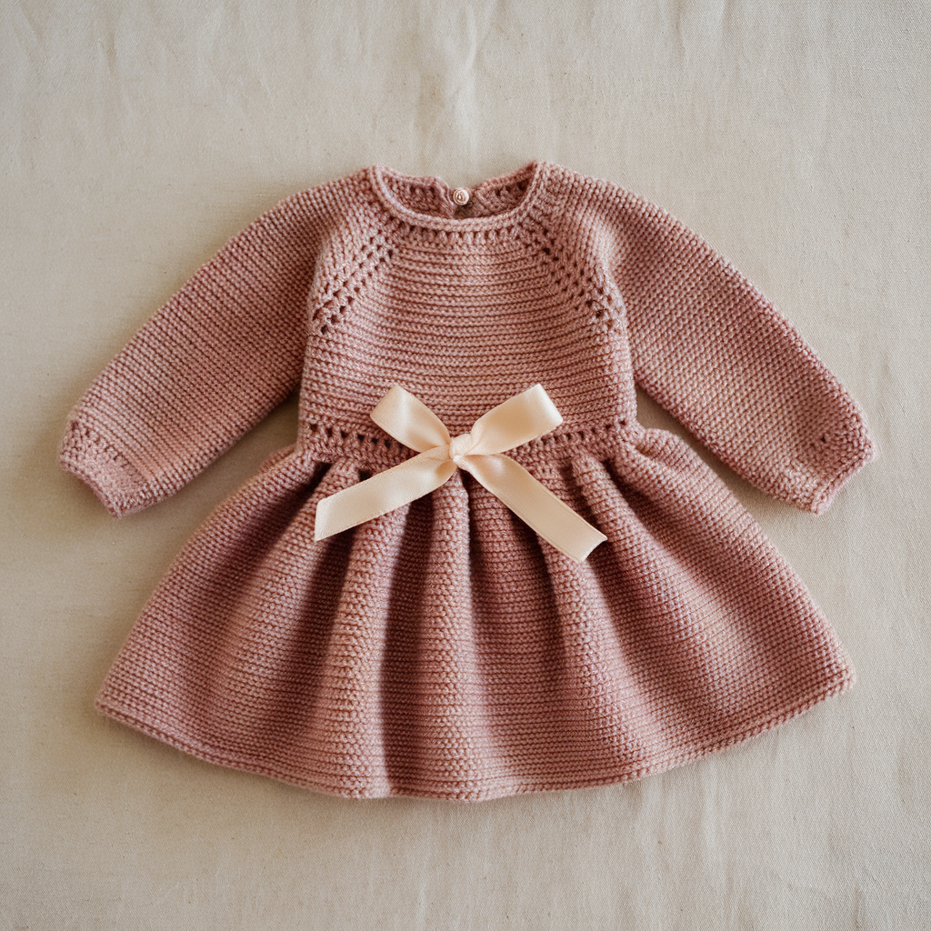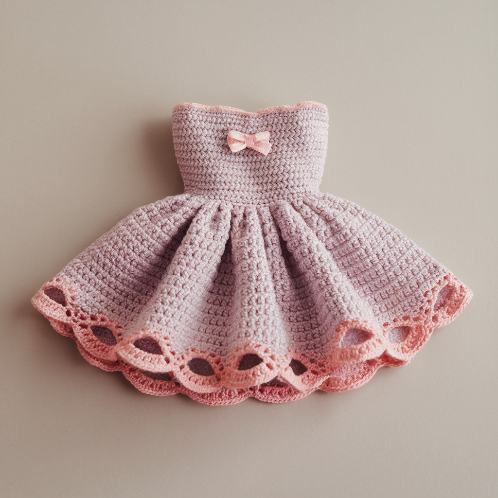 - Finishing touches: Add a picot edge, sequined trim, or tiny rosette at the waist (crochet 3–4 ch loops rolled into flower) to make it royal. Add a sash ribbon.