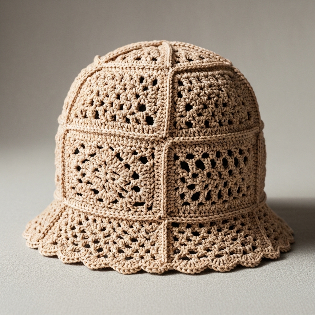 - Crown option B (classic increase rounds): Use sc or hdc increases as in other hats for a smoother crown and add a granny-textured overlay by working a round of shells as decorative band.