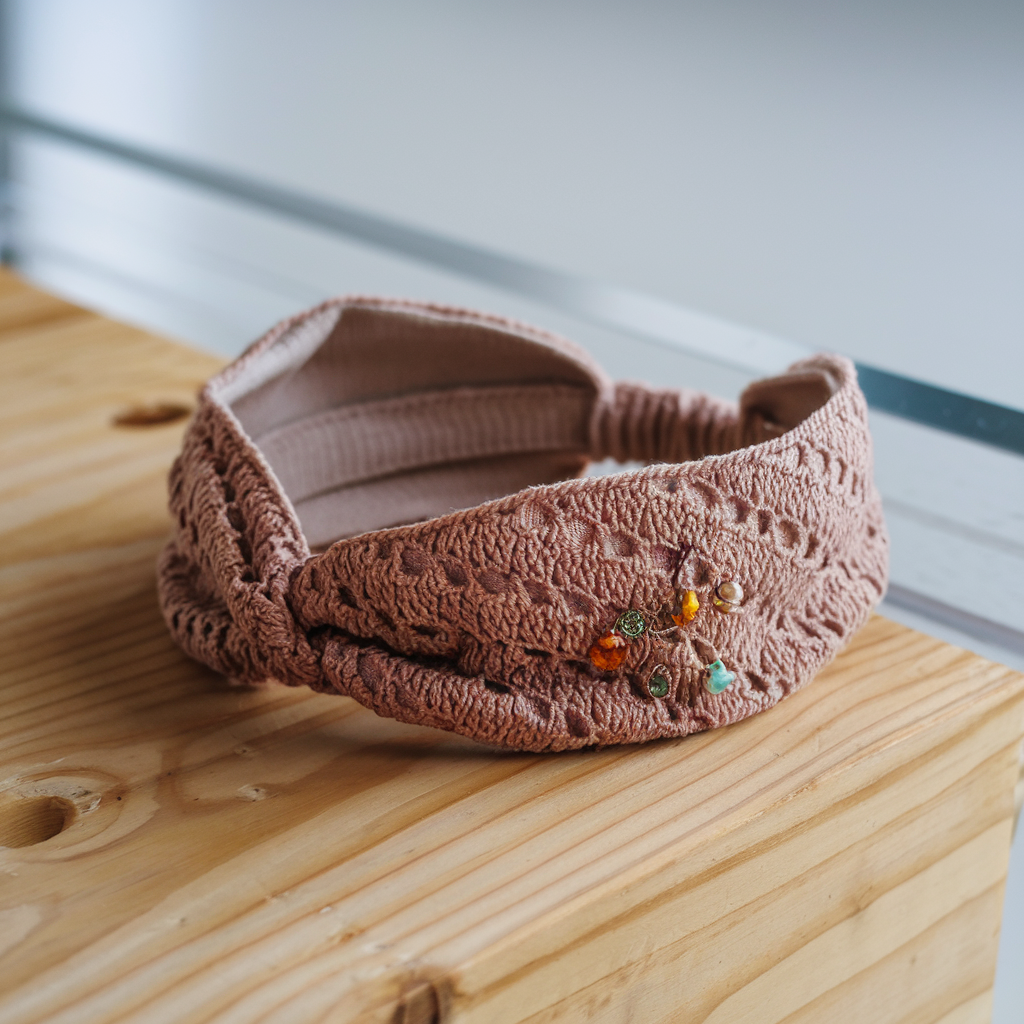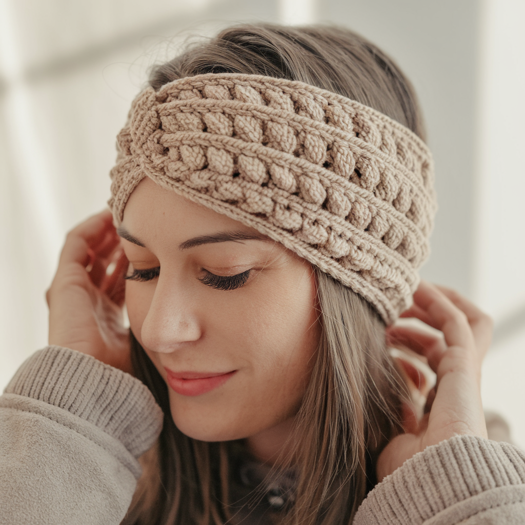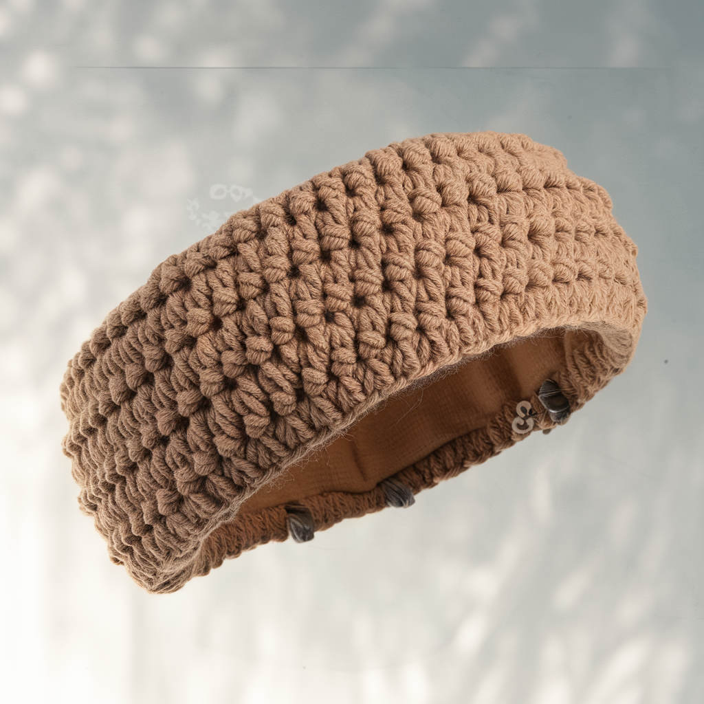 An airy, textured headband using shell and chain-lace stitches for boho vibes — light but warm when lined.
