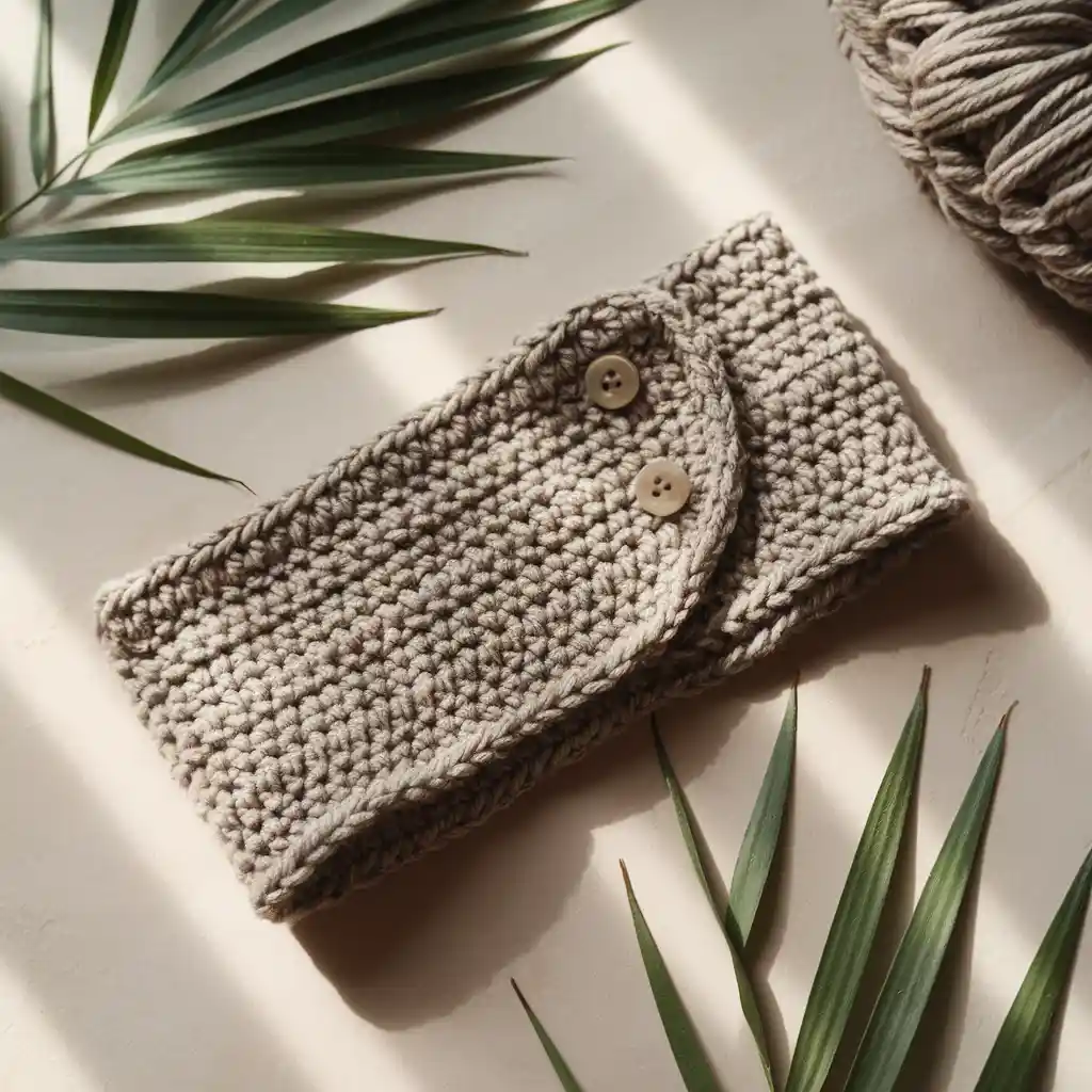 - Decide one short end will hold buttons; on the opposite end you’ll create 3 button loops spaced 1/2–1″ apart. Create loops: attach yarn to edge, ch 6, sl st to base three times, evenly spaced; fasten off and weave ends.