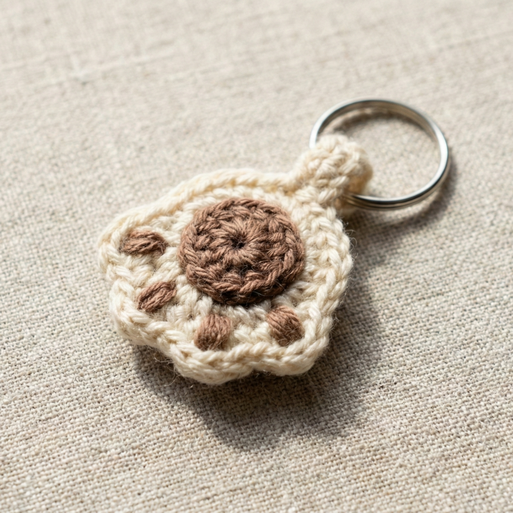 - Hardware sizes: Typical key rings 25–30 mm (1″–1.25″) and small lobster clasps are convenient. You’ll also need a short chain or a jump ring to attach the crochet piece to the key ring for better movement.