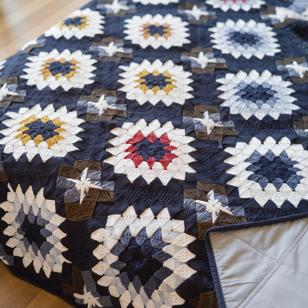 - Backing options: cotton fabric + thin batting (quilt sandwich), or make a full crocheted reverse (less insulating). For washable quilts, sew a removable fabric backing with zipper or button closure.