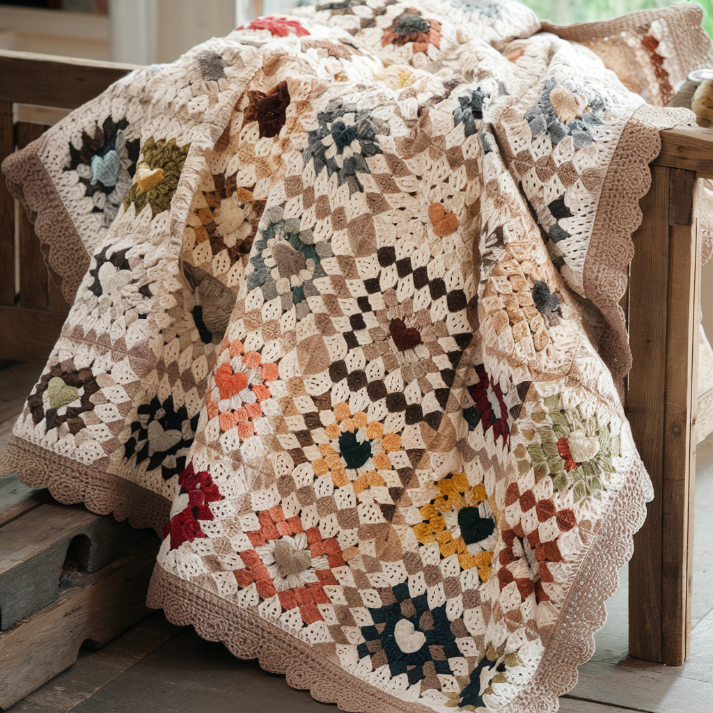 - Add crocheted appliqués like tiny barns, stars, or leaves per block for a true country vibe.