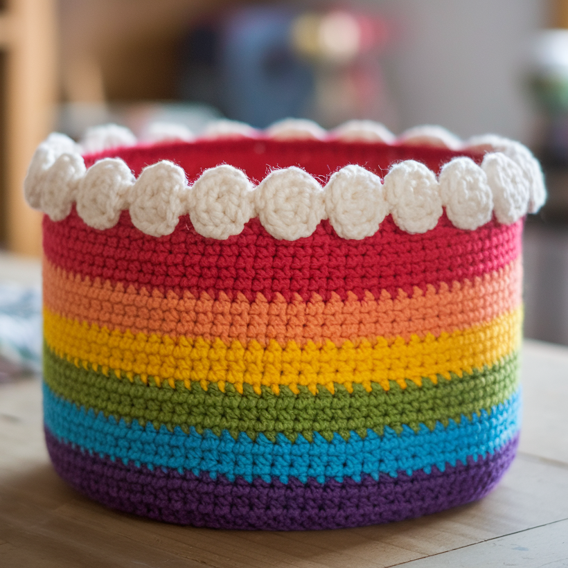 4. Crochet Rainbow Layer Cake Basket Pattern
