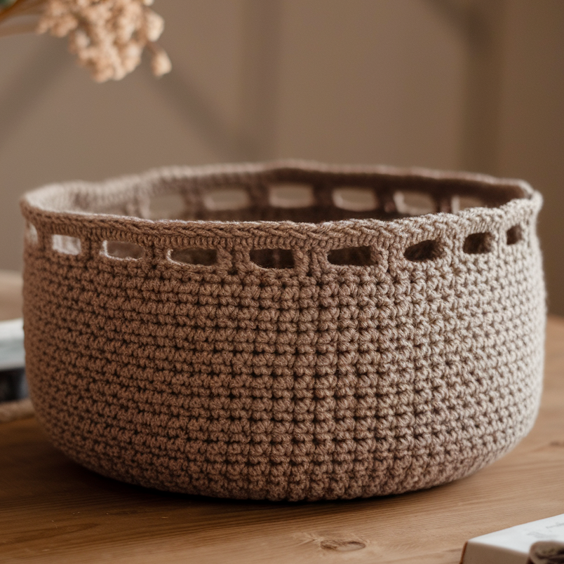 - Top off with a round of sc, one round of BLO hdc for a crisp edge, or add a crocheted rim (1–2 rounds FPdc / BPdc) for a woven rim look.