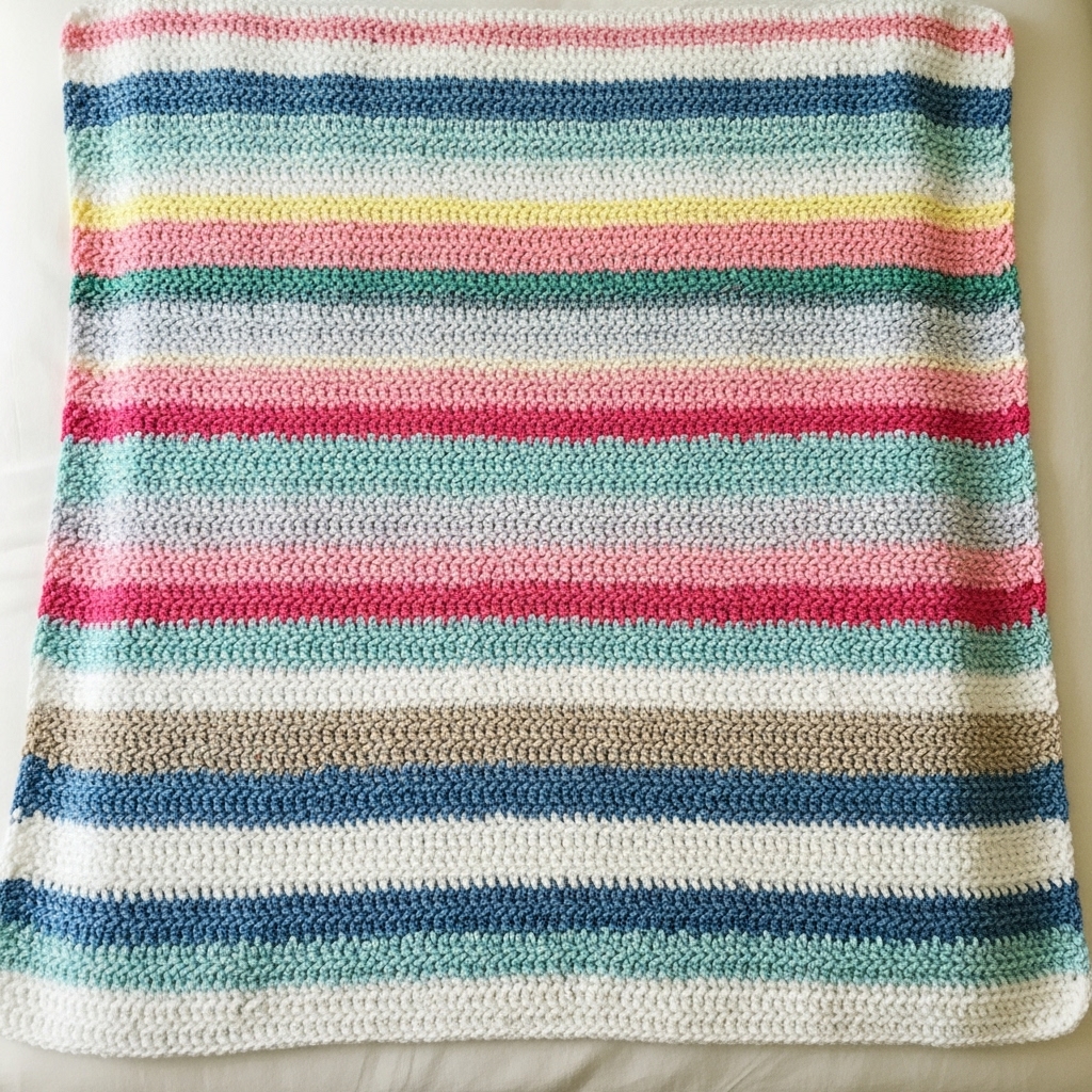 - Continue striping: Repeat stripe and occasional texture rows until blanket reaches desired length.