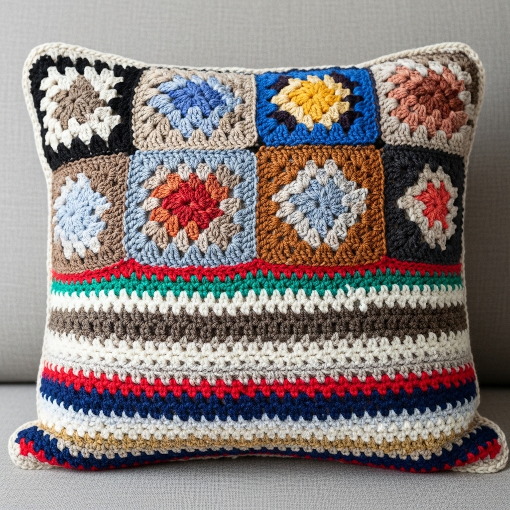 - Join squares: Use slip-stitch join or single crochet join to make a 3×3 front panel.