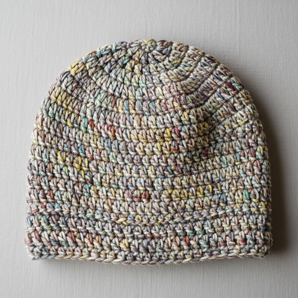 - Ribbed brim: Optional — switch to hdc in BLO for 2 rounds for a ribbed look, then fold edge and sl st or seam to inside to create a cuff. Or work sc rounds for a simple finish.