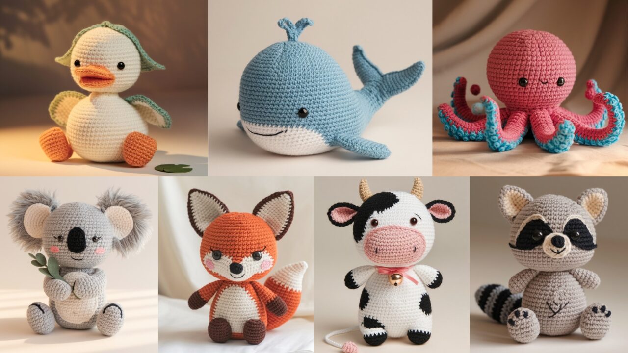 Amigurumi — the Japanese art of crocheting small stuffed toys — is one of the most satisfying ways to turn yarn into something adorable and tactile. These little animals make excellent gifts, baby-safe toys (with precautions), decor, and pattern practice. Below you’ll find seven approachable amigurumi patterns: Cow, Whale, Fox, Raccoon, Koala, Duck (green & white), and Octopus. Each pattern is written so you can make it with common tools and basic stitches. I include assembly notes and safety tips so your finished critters are cute and durable.