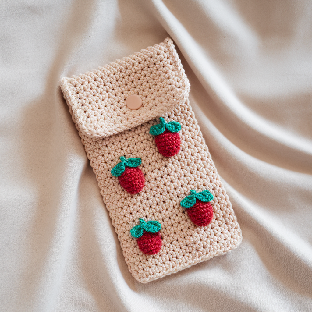4. Crochet Phone Pouch with Mini Strawberries Pattern