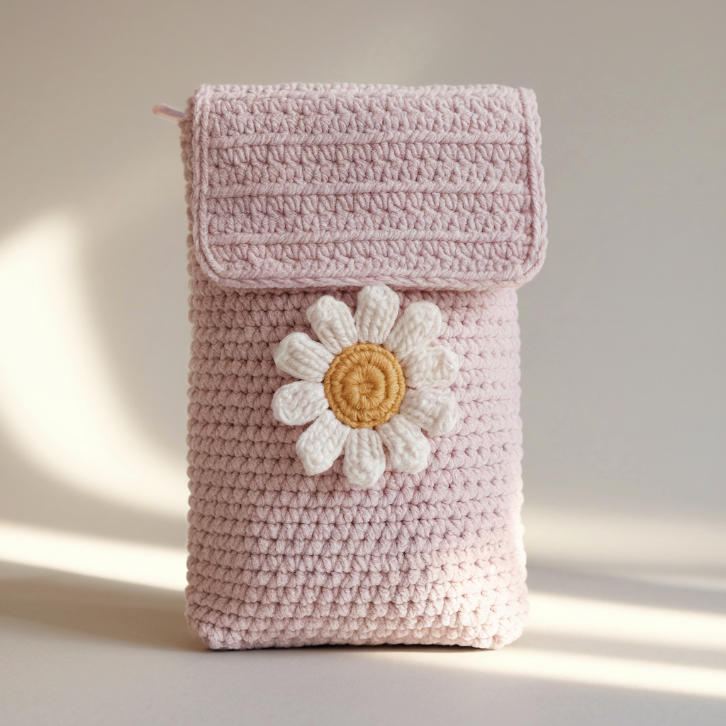 3. Crochet Phone Pouch with a Daisy Flower Pattern