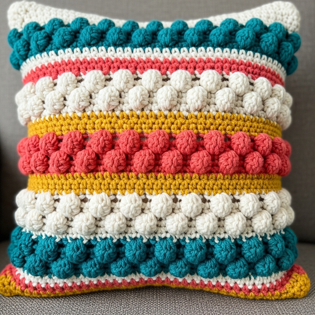 7. Crochet Bobble Stitch Striped Pillow Pattern