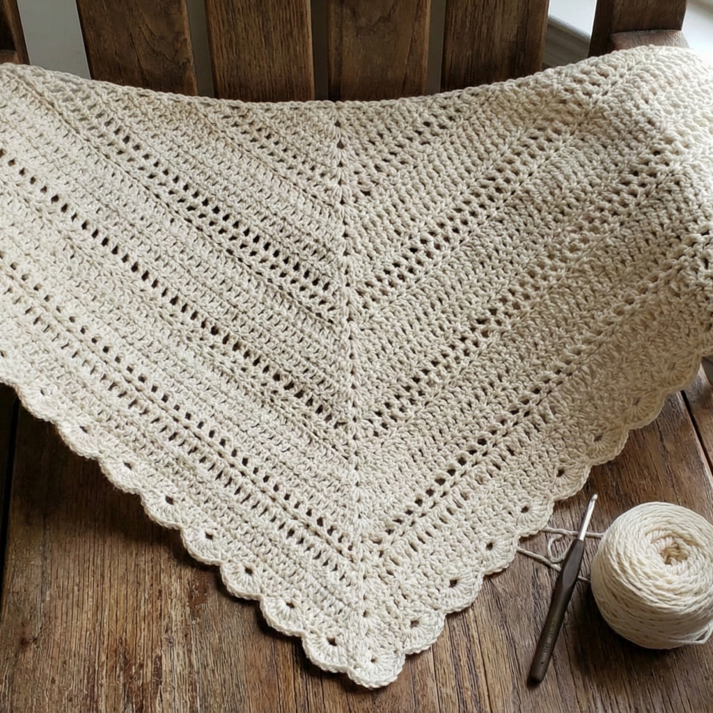 - Worsted / Aran / Bulky (5.5–8.0 mm hooks) → warm, cozy triangle shawls and heavily textured statement pieces.