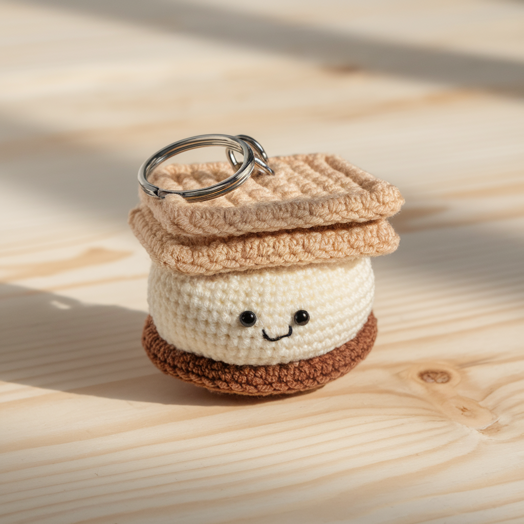 Tiny toasted marshmallow + chocolate + graham cracker — great as a keychain.