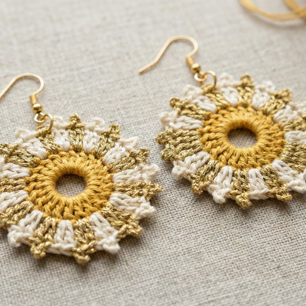 These seven crochet earring patterns cover a wide range of styles — from delicate lace hearts and sunbursts to playful donuts and peppermint swirls — and they’re all designed to be lightweight, wearable, and quick to make. Use fingering or sport cotton, fine hooks, and hypoallergenic findings to keep ear comfort top priority. Make sets in coordinating colors, mix-and-match motifs for quirky gift packs, or create seasonal variations (holiday reds and greens, spring pastels). The step-by-step instructions here will get you from yarn to finished pair with minimal fuss and maximum charm.