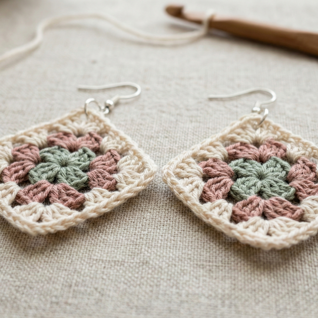 5. Crochet Granny Square Earrings Pattern