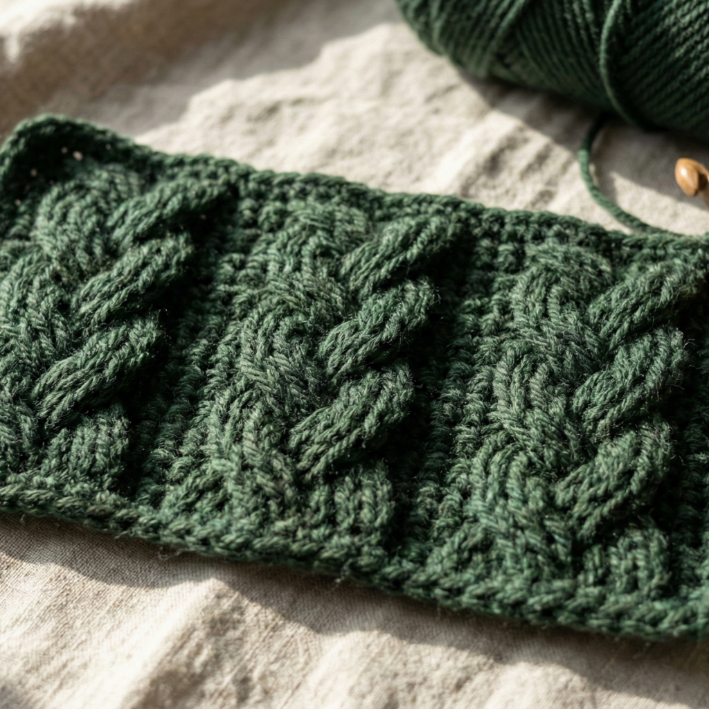 Celtic weave creates an interlaced, braided appearance by using post stitches that cross over and under. The result is dramatic and elegant, ideal for scarves, stunning sweater panels, and textured blankets.