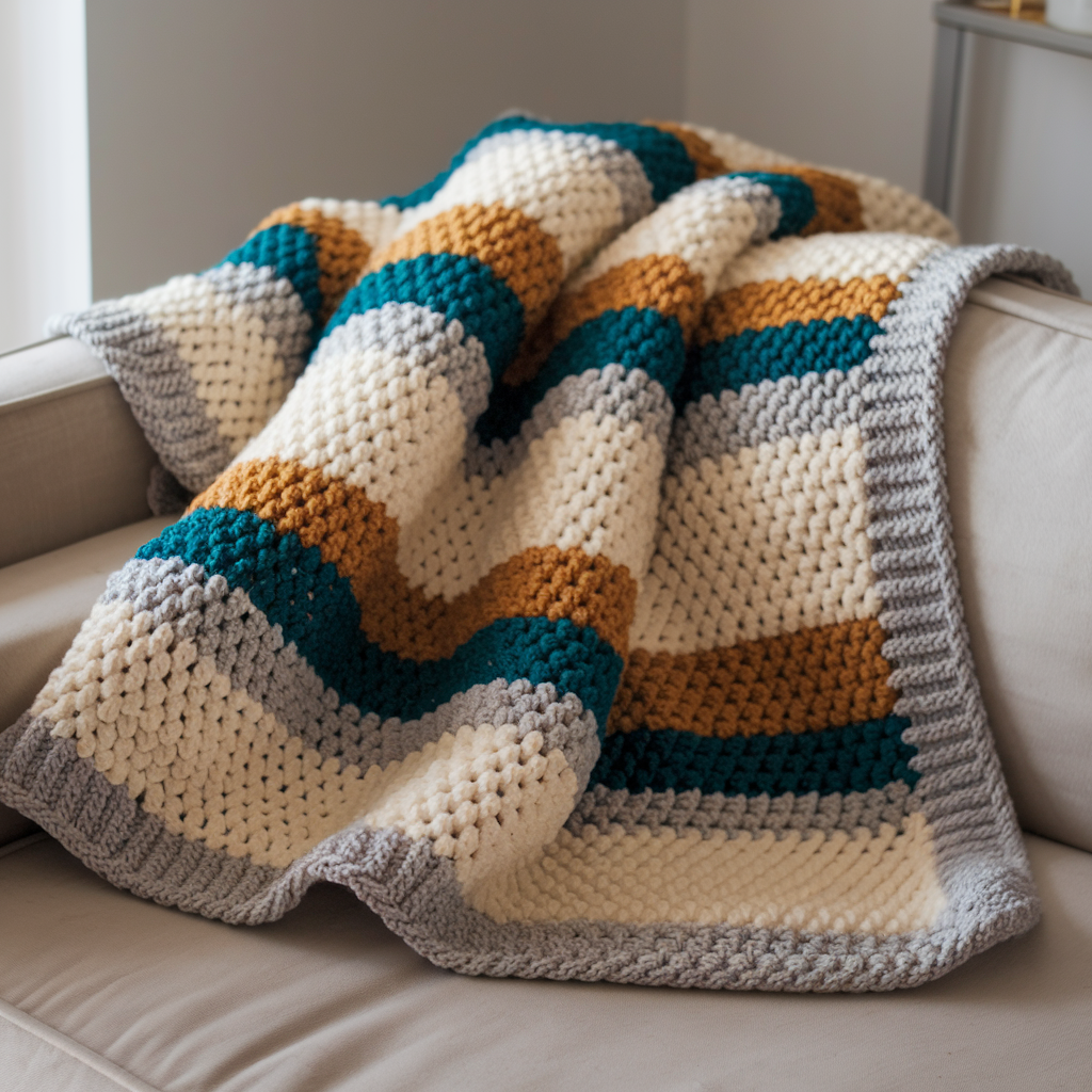 A handmade blanket is the ultimate cozy project: big enough to be satisfying, small enough to finish in a reasonable time, and endlessly customizable. These seven patterns cover modern geometry, lofty chunky stripes, vintage retro charm, global-inspired texture, calming colorwork, horizon gradients, and a classic V-stitch — each presented with clear materials lists, skill notes, step-by-step instructions, sizing guidance, finishing tips, troubleshooting help, and design variations so you can make a blanket that reflects your style.