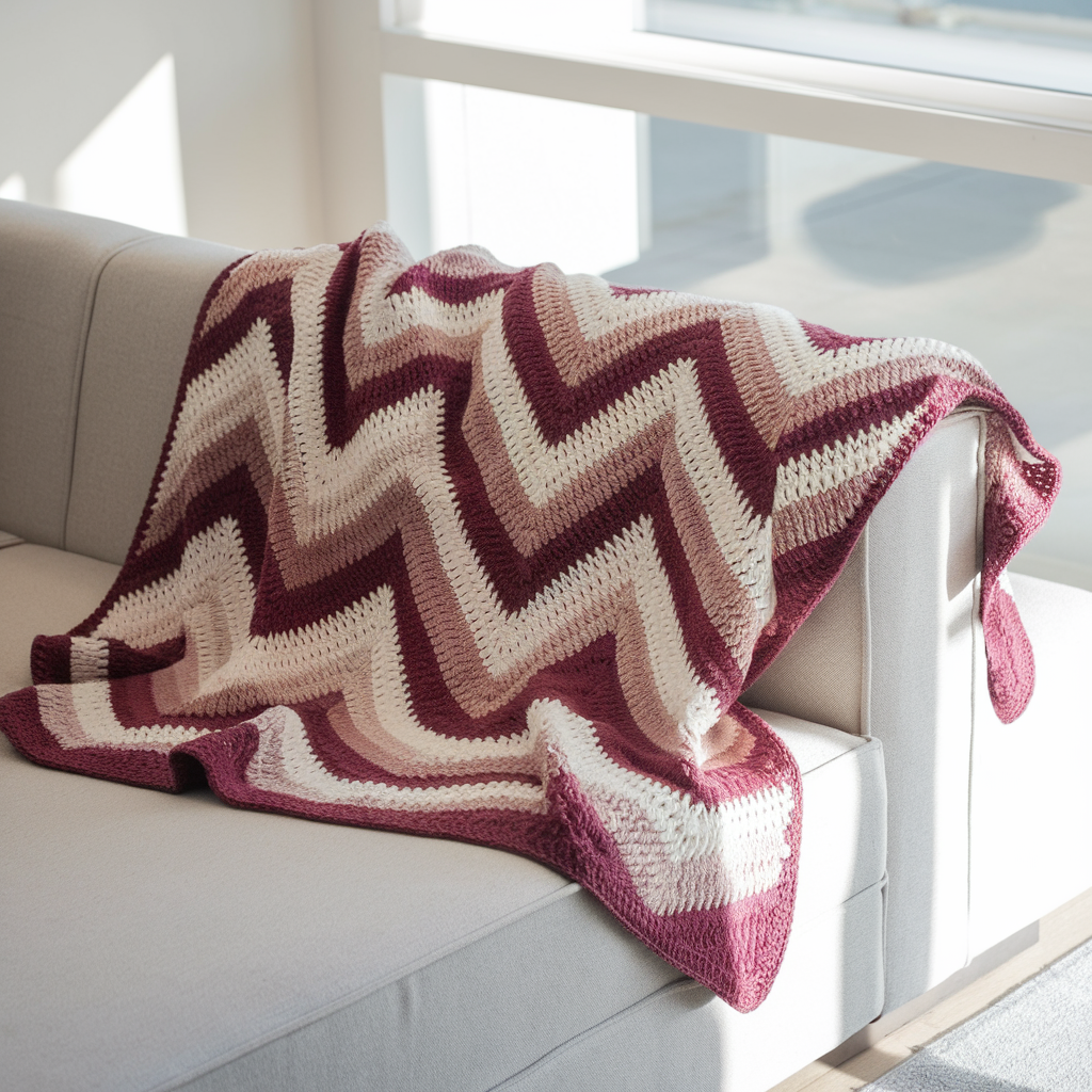 - Row 2–end: Turn, ch 3, dc across following stitch pattern (work dc into tops and into increases/decreases to maintain the chevron); repeat Row 1 until blanket reaches desired length (~60 in for throw). Keep tension consistent to keep peaks even.