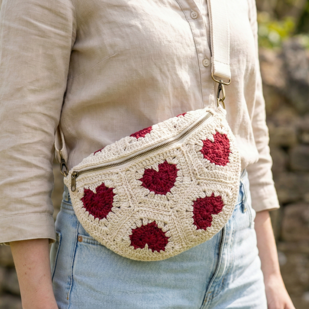 4. Crochet Heart Granny Square Crossbody Waist Bum Bag Pattern