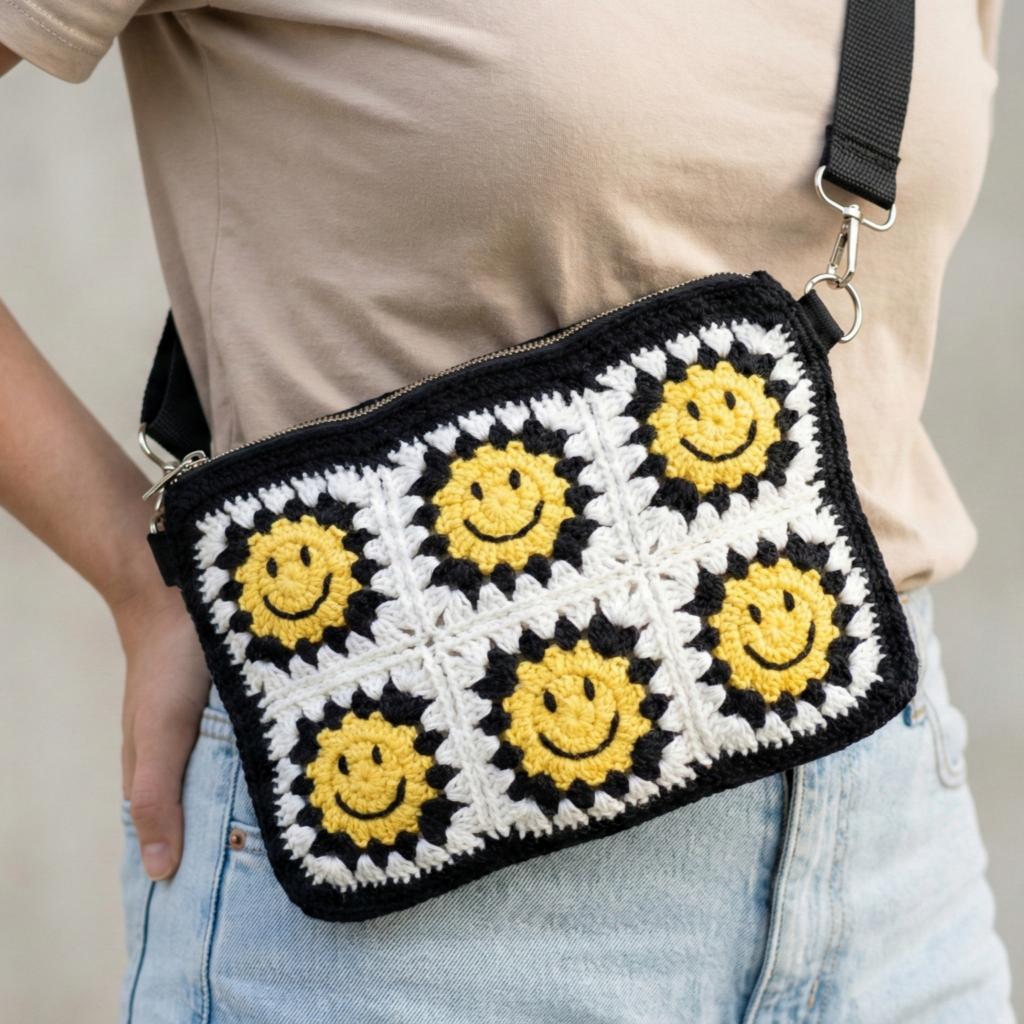 3. Crochet Smiley Faces Waist Crossbody Bum Bag Pattern