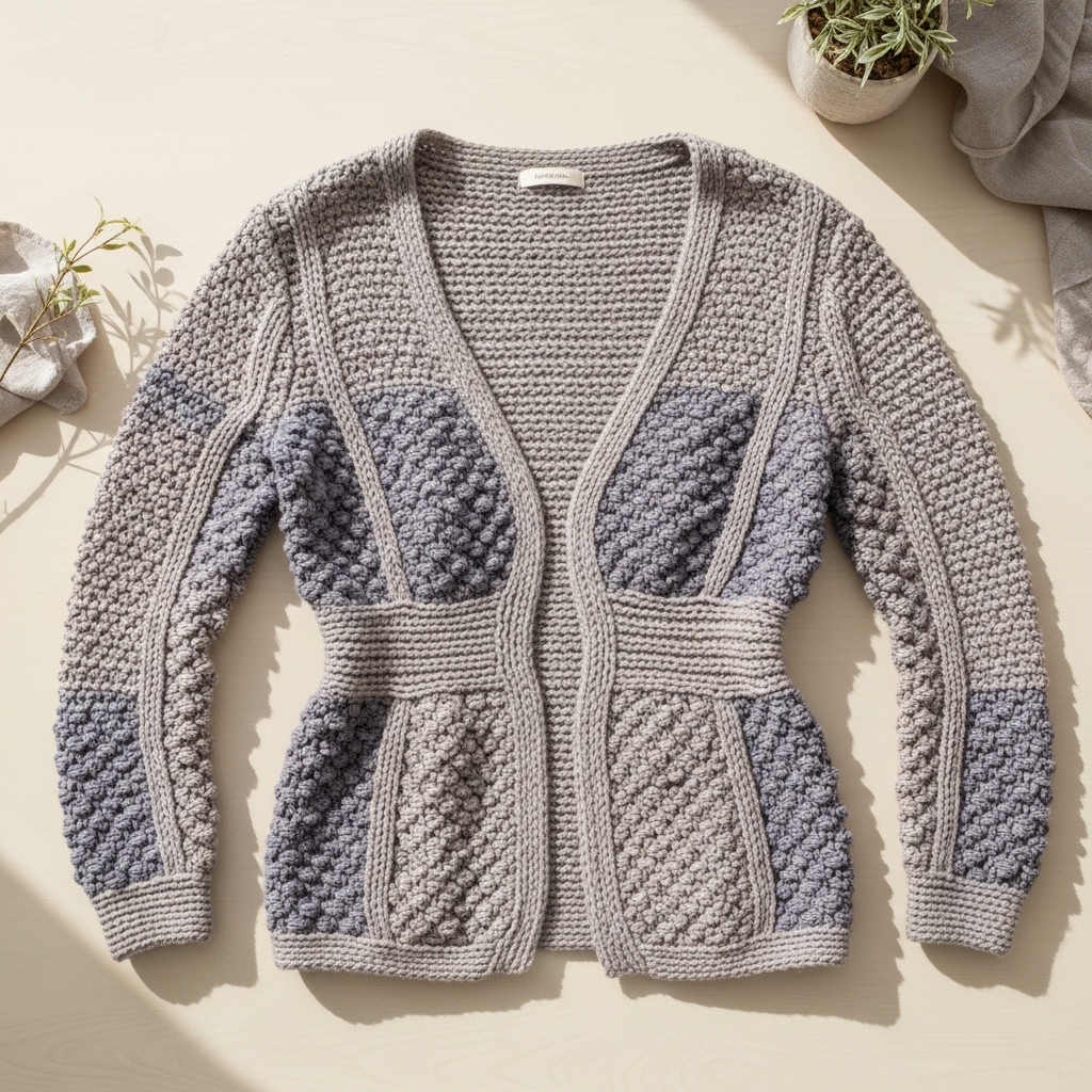 - Blocking: Always block panels before seaming when using natural fibers — it evens gauge and relaxes fabric. For bulky yarns, gentle steam-blocking is often enough. Pin pieces square for precise alignment.