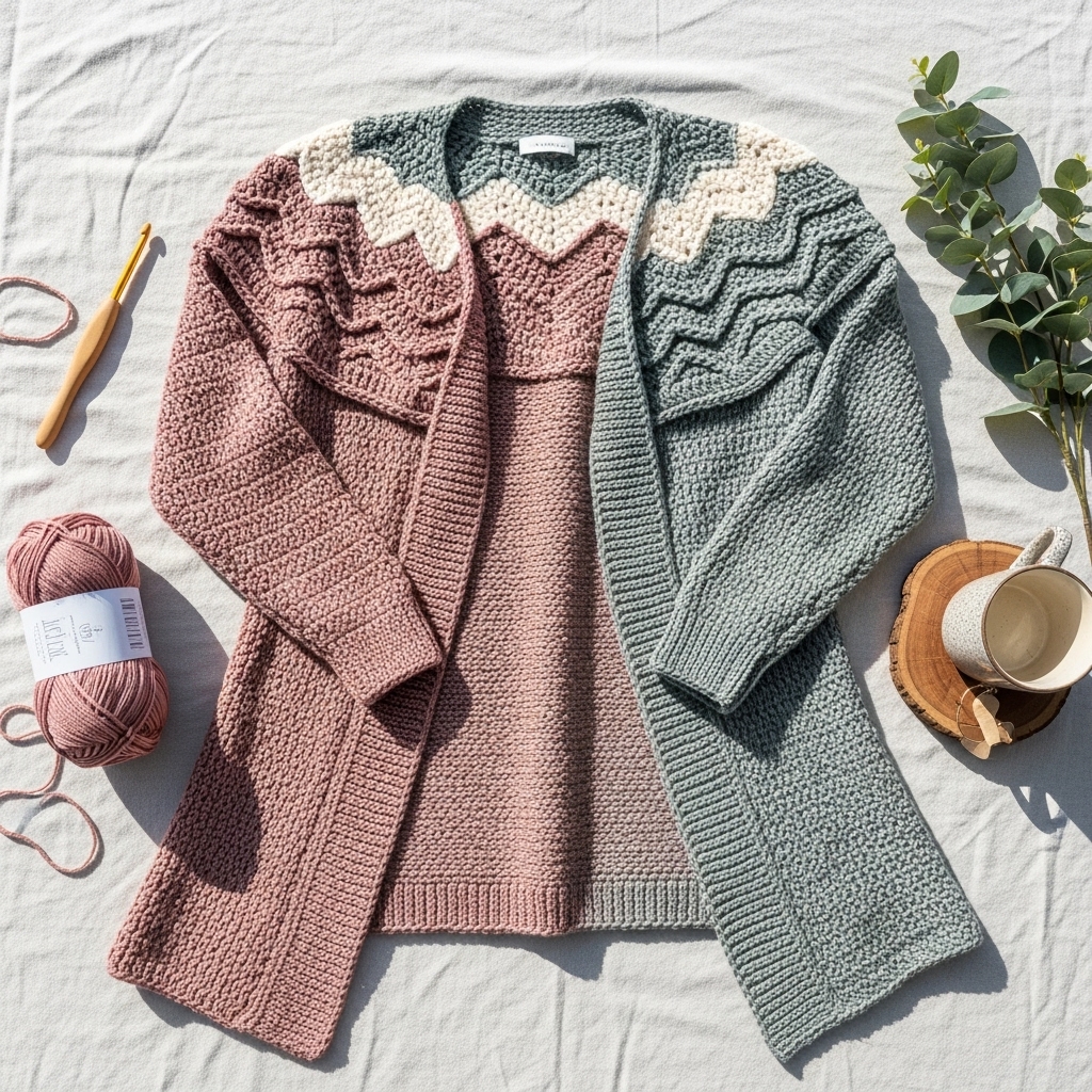 - Edgings & bands: Adding ribbed bands (BLO rib or front-post/back-post ribs) lends a finished, knit-like appearance. Crochet buttonbands instead of sewing premade ones for cohesive look.