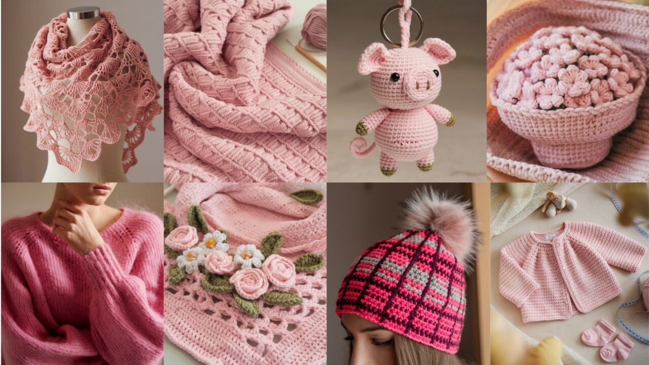 Pick one that fits your time and energy: a scarf or keychain for today, a beanie or bouquet for a weekend, or a blanket or sweater if you want a longer, meditative project. Personalize every pattern with your favorite pink shades or mix in neutrals for subtlety.