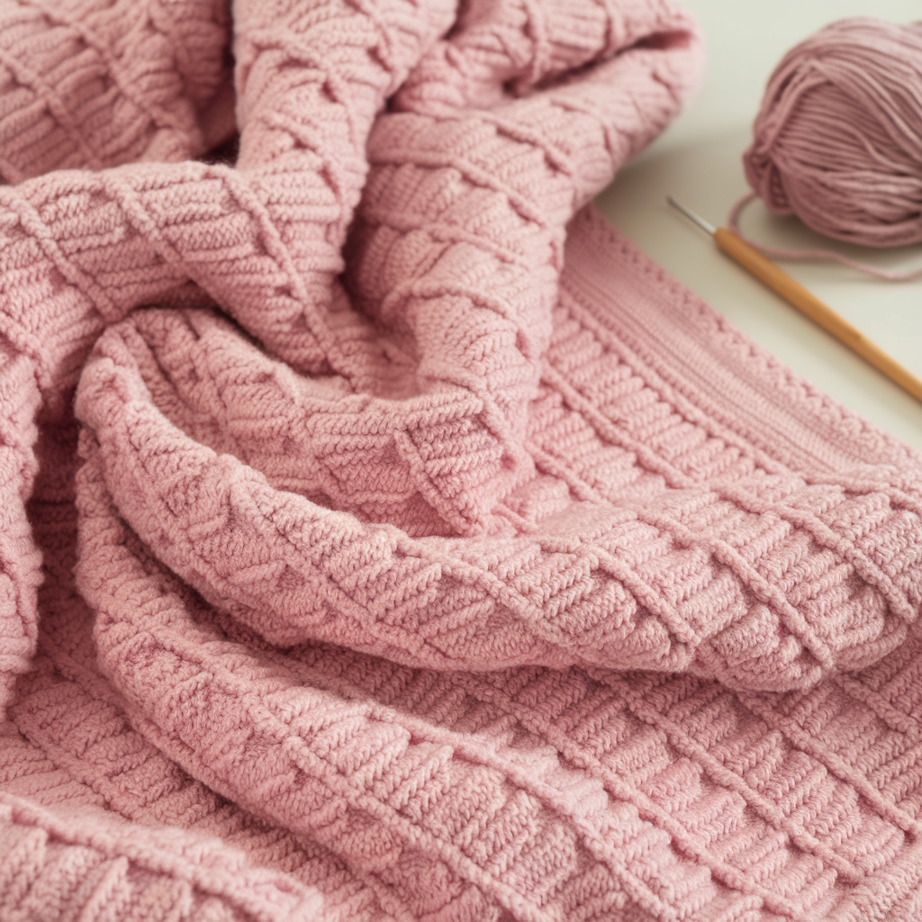 The petal (also called the shell or puff-petal) stitch creates a soft, bumpy texture that looks floral—perfect in soft pinks. It’s cozy, quick to grow, and forgiving on gauge.