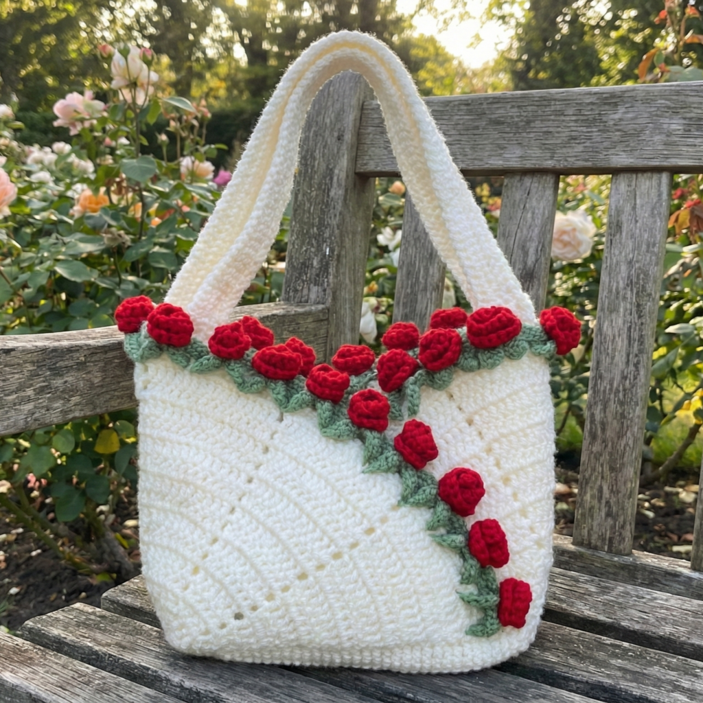 - Crocheted handles: sturdy, padded straps crocheted and sewn to bag; recommend double-stranded yarn or rope core for strength.