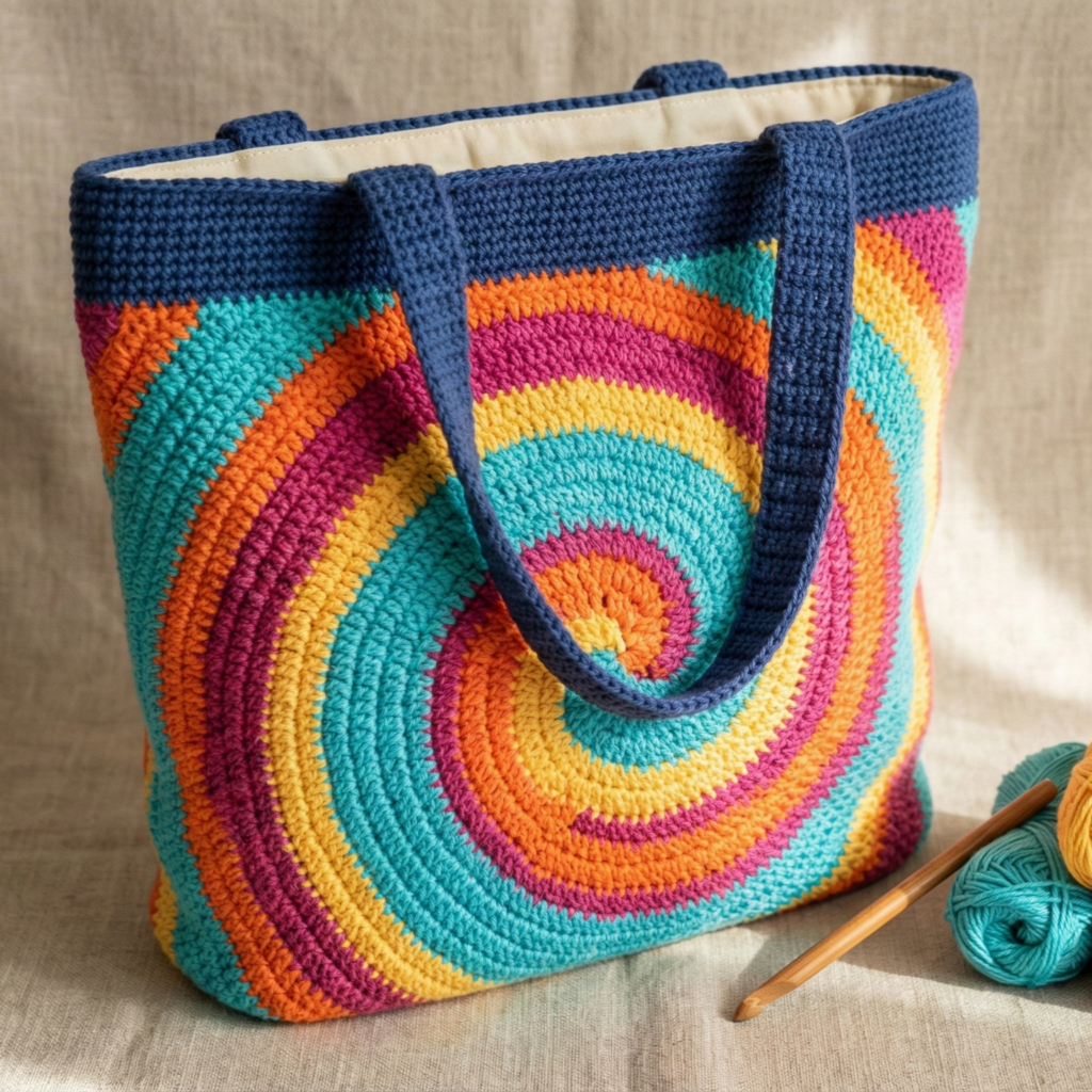 A playful tote with spiral swirl or horizontal stripes — modern and eye-catching.