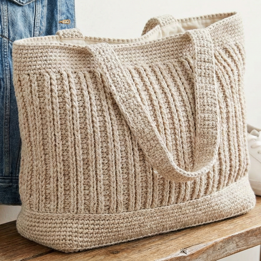 This pattern intentionally mimics the dense look of hand-knit fabric while staying fully crocheted — great if you love the knit aesthetic but prefer crochet techniques. It’s a roomy, slouchy everyday tote.