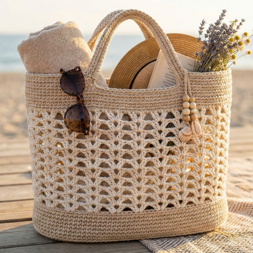 Totes are fast, useful, and let you experiment with texture, colour, and structure. Choose yarn and construction to match how you plan to use the bag: market-shopping, beach, everyday carry, or a special statement piece.