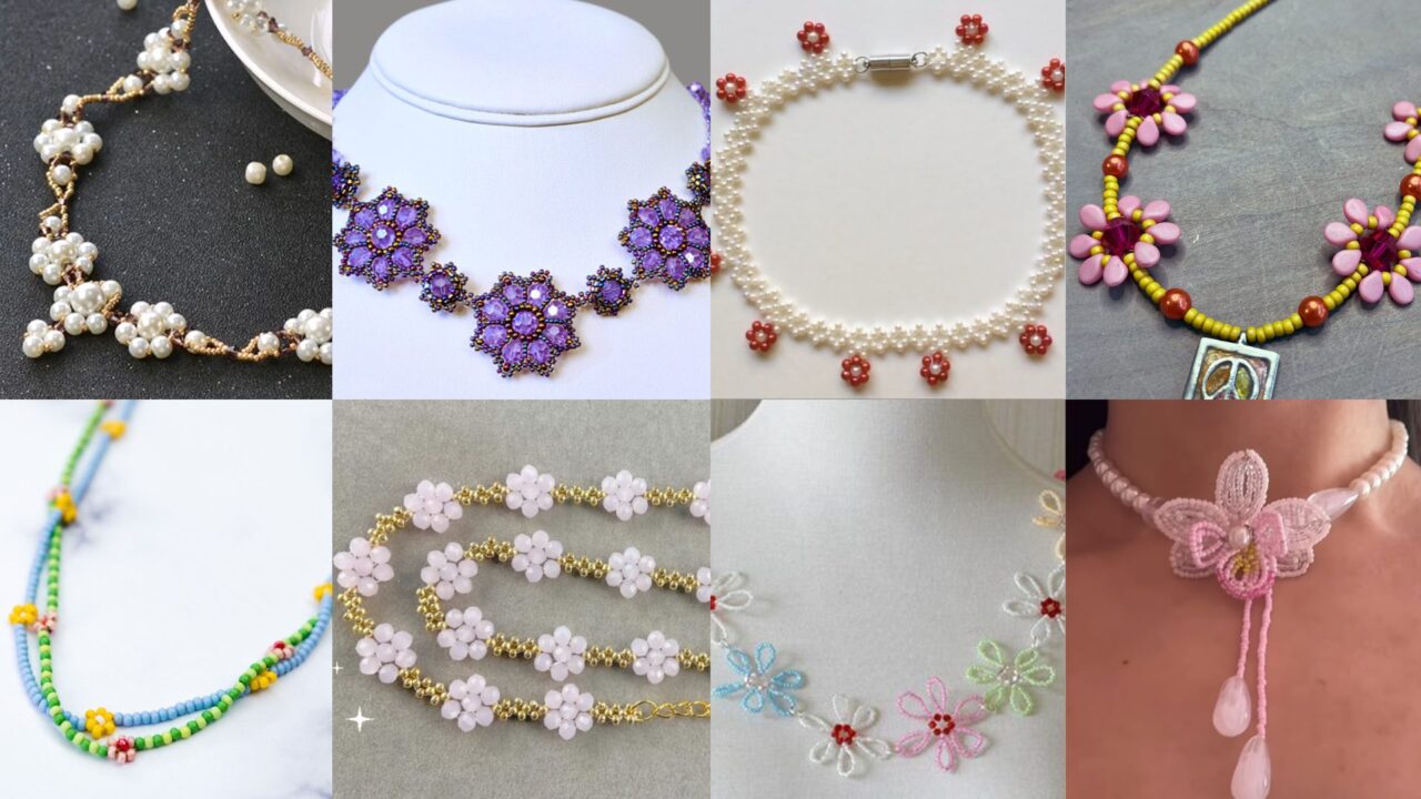 These eight beaded flower necklace patterns give you a variety of ways to bring floral charm into your jewelry box — from easy daisy chains and pearl-centered classics to Miyuki half-tila geometry and French beaded orchids. Pick a beginner-friendly design to practice your stitches, or try a more advanced technique (French beading or half-tila work) to level up. Whatever you choose, remember: beadwork rewards patience and neat tension, and the end result is always a pretty wearable keepsake you made yourself.