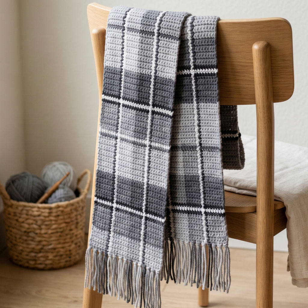 1. Crochet Gray Shades Tartan Scarf Pattern