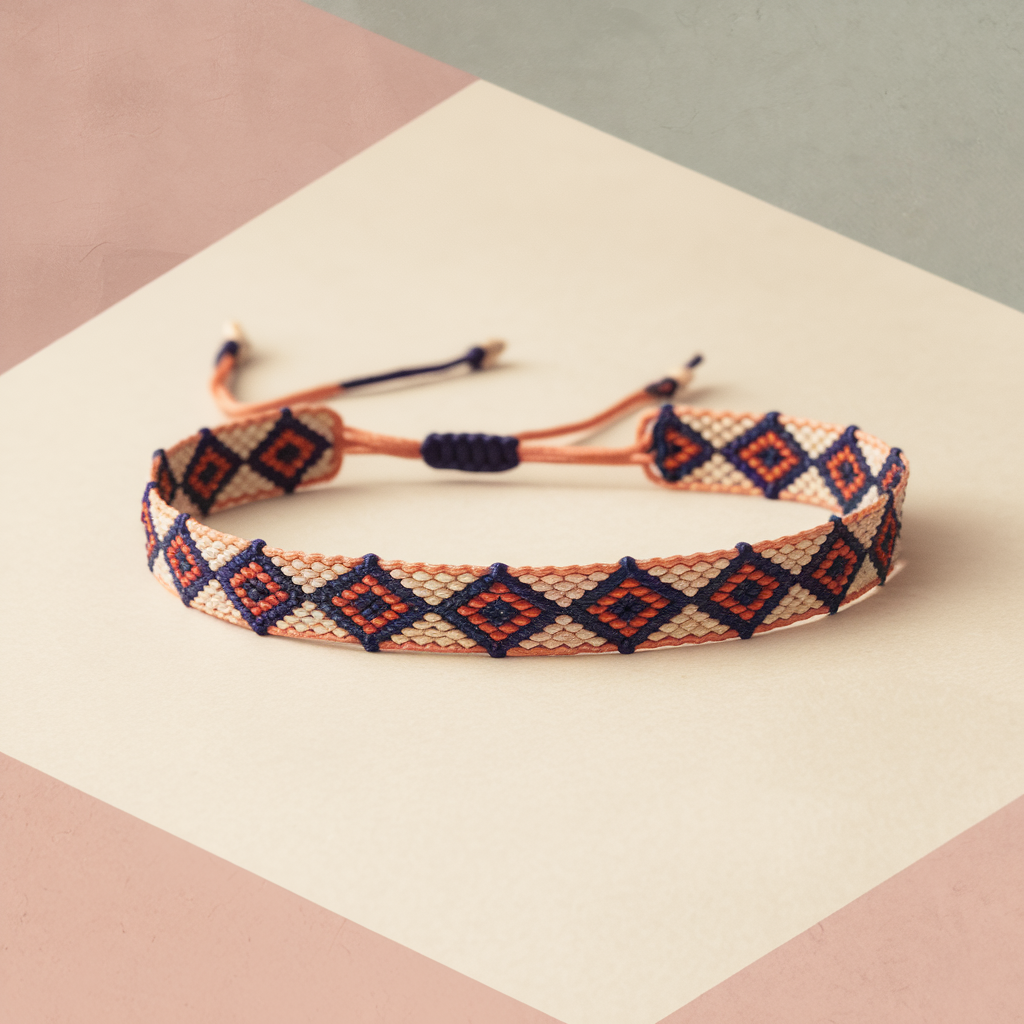 - Repeat rows: The diamond is a multi-row motif; repeat the sequences until diamond height is reached, then shift start positions to cascade diamonds along the bracelet.