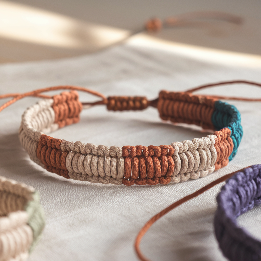 Square knots (also called reef knots) are the backbone of many macramé bracelets. They’re fast to learn, durable, and great for thicker cord.