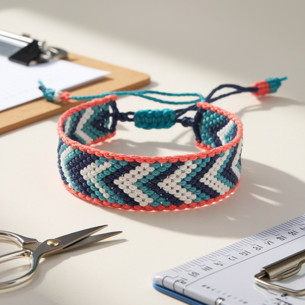 - Repeat & finish: Work rows until length fits wrist. Finish with braided tails or a loop/button closure.