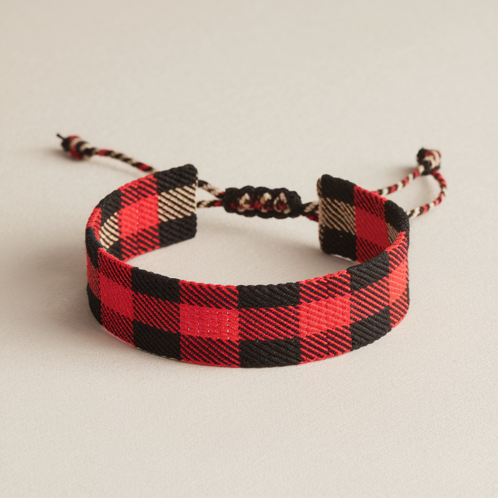 Alpha friendship bracelets are worked row by row with a base string and knotting colors across it like weaving. This is ideal for plaid because you can place color blocks exactly.