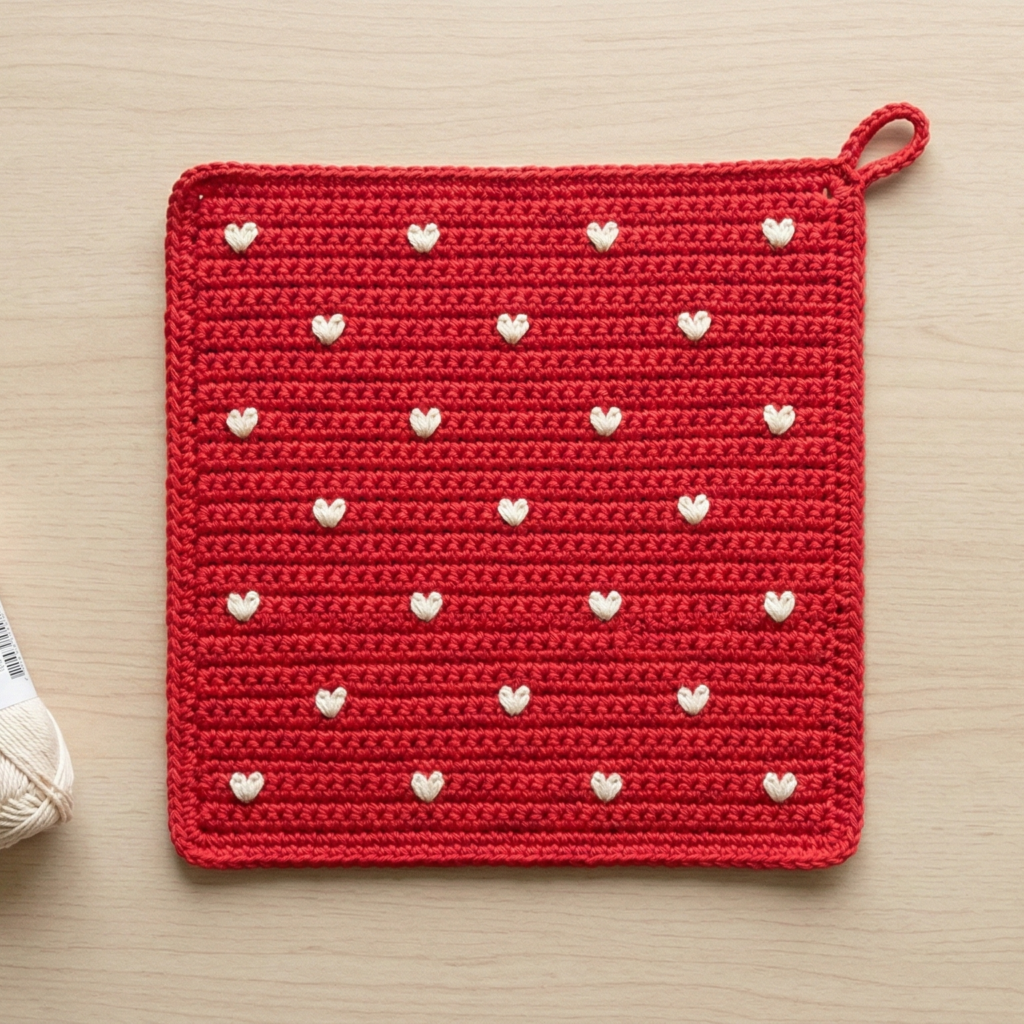 8. Crochet Tiny Hearts Pot Holder Pattern