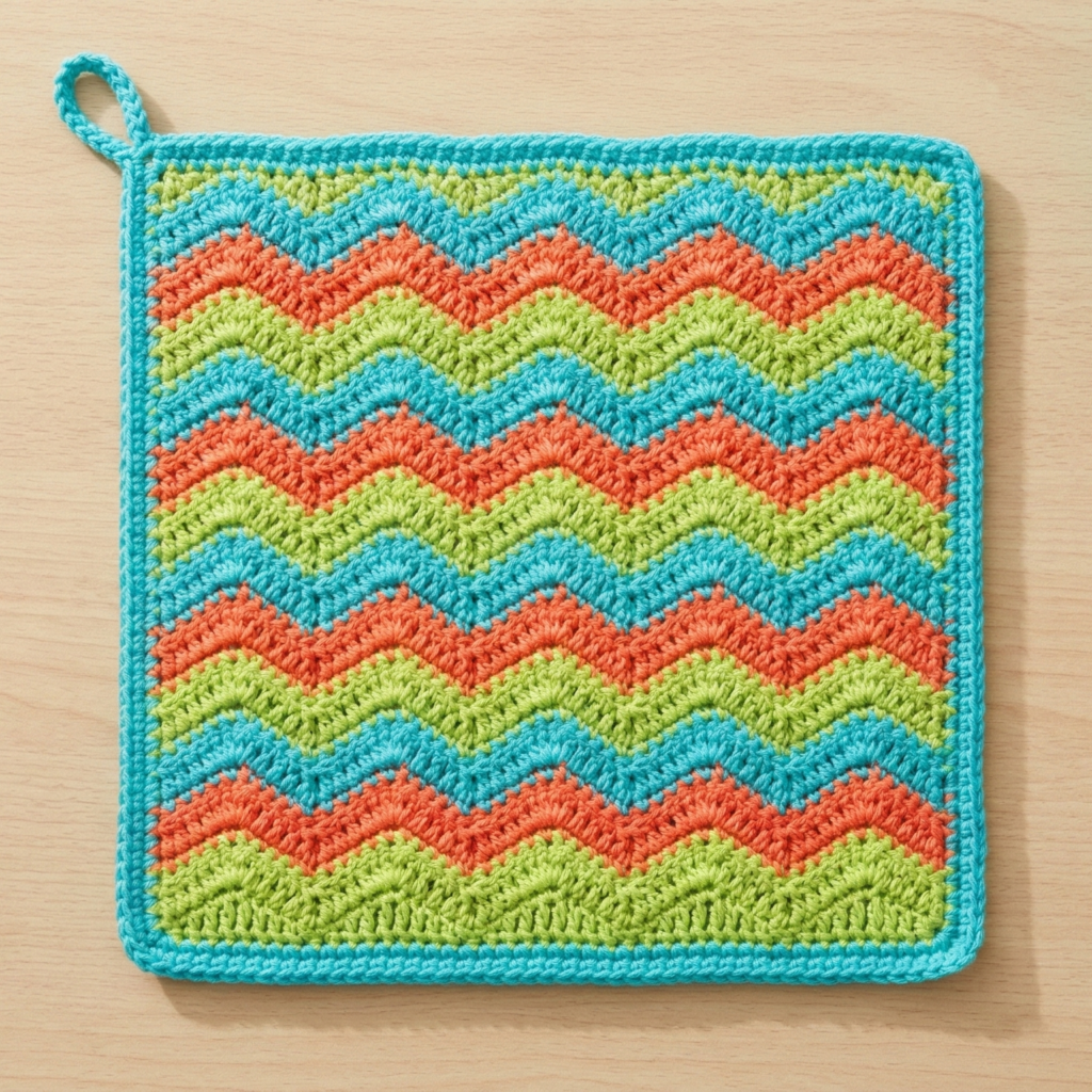7. Wavy Ripple Square Pot Holder Pattern