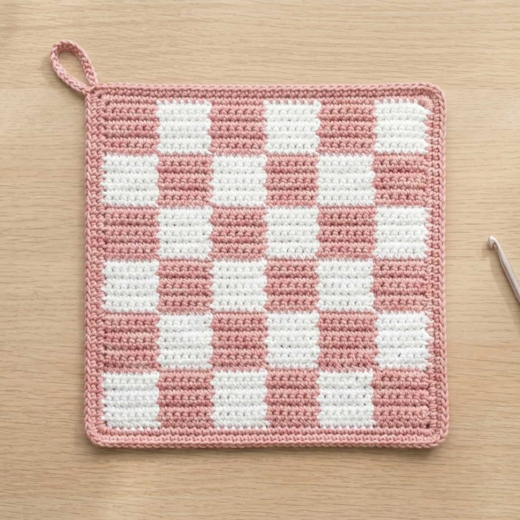 2. Crochet Pink Checkered Pot Holder Pattern