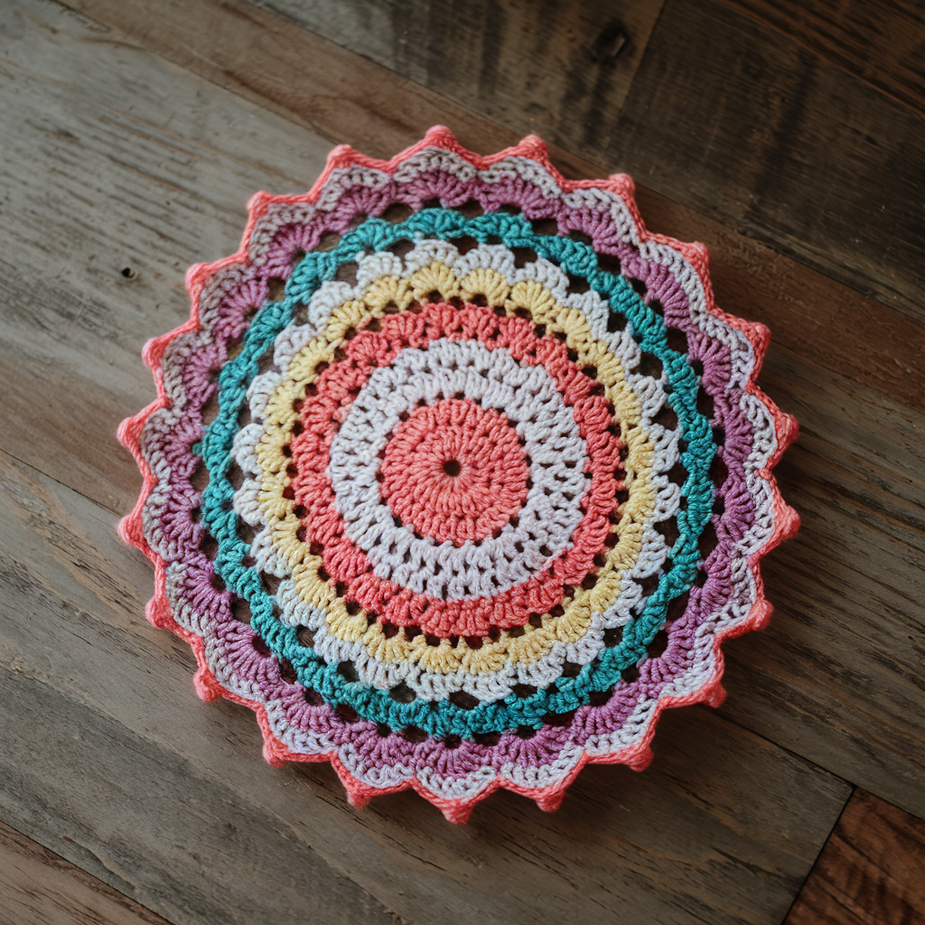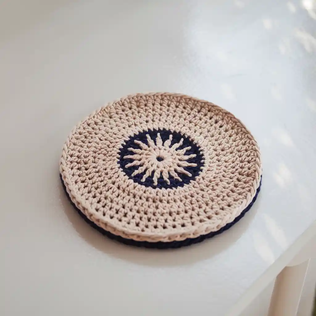 - Blocking: Most coaster patterns look crisper after blocking. For cotton, dampen and pin to shape on a blocking board, leave to dry. For delicate threads, press with a steam iron carefully (use cloth barrier).