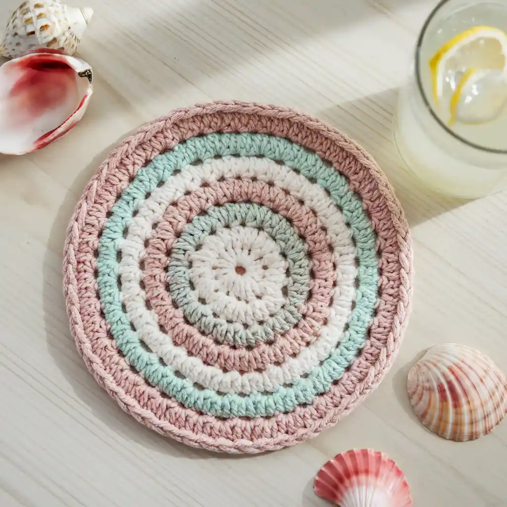 Care: cotton coasters can be machine-washed gentle and air-dried or low tumble. Avoid hot dryers repeatedly — yarn will age faster.