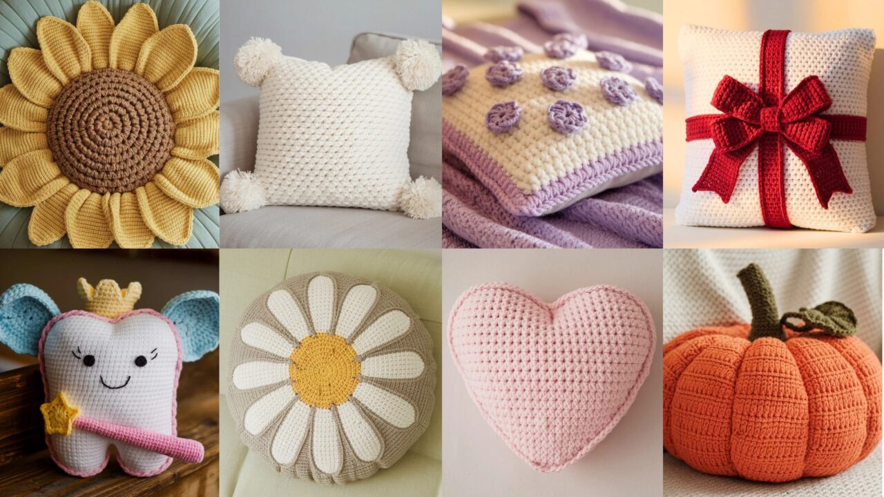 There you have it — eight cozy, creative crochet pillow patterns you can make right now. Each pattern is designed to be approachable and adaptable: change yarn weight and hook size to scale pillows up or down, swap colors to match your decor, and mix techniques (appliqué, surface embroidery, pom poms) to make each piece uniquely yours. If you want any one pattern converted to a printable PDF, sized differently, or turned into a video-friendly step list, tell me which one and I’ll lay it out in that format next — but for now, pick a yarn, pick a hook, and enjoy stitching your new favorite pillow!