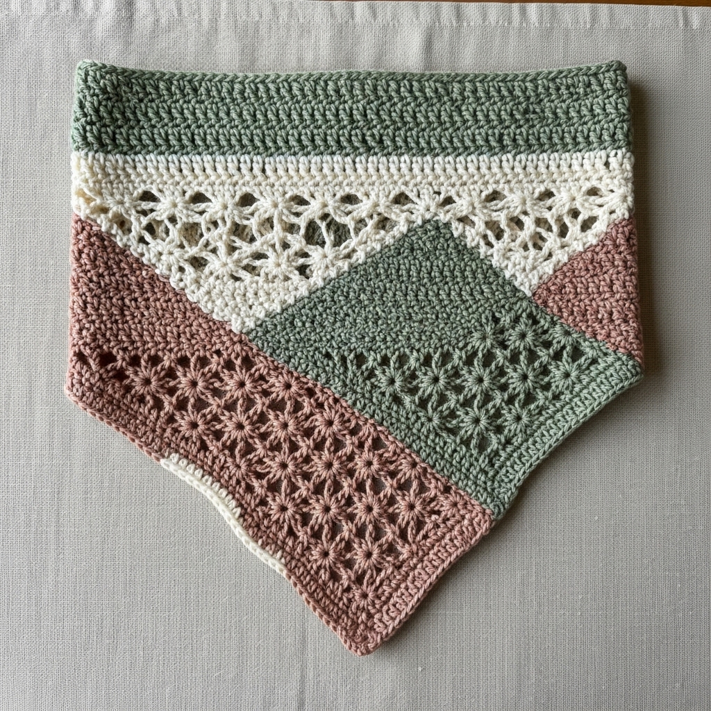Bandanas are one of the most versatile small-wearable crochet projects: quick to stitch, endlessly customizable, and perfect for adding a handmade accent to outfits, pet collars, or home décor. This collection pairs airy lace with solid textures so you can choose lightweight, summery bandanas or warmer, structured versions. Each pattern below includes: skill level, suggested materials, sample gauge and finished-size guidance, a clear step-by-step construction (with counts and repeat guidance you can adapt), helpful variations, finishing and blocking tips, and styling ideas. All patterns use US crochet terms.