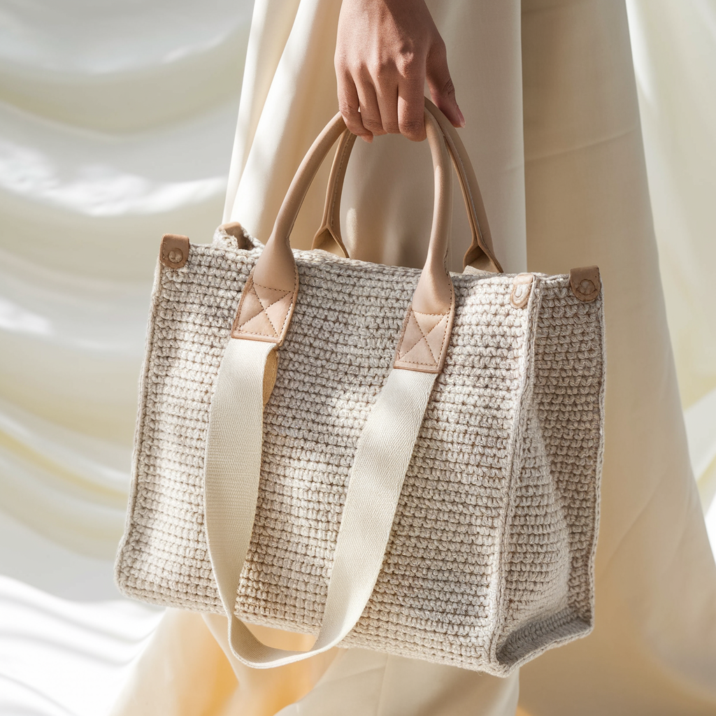 - For airy summer/open totes: cotton-linen blends or DK + 3.5–4.5 mm hook.