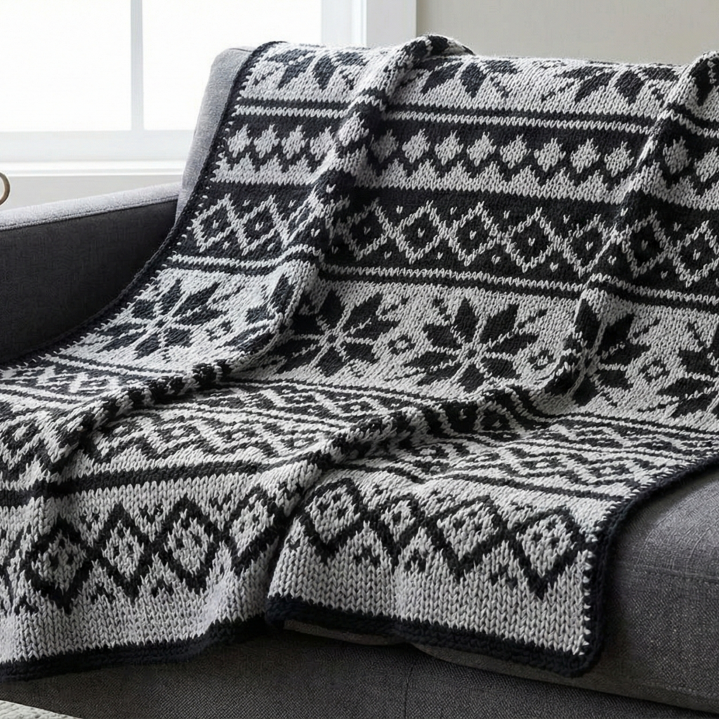 4. Crochet Black and Gray Tunisian Nordic Blanket Pattern