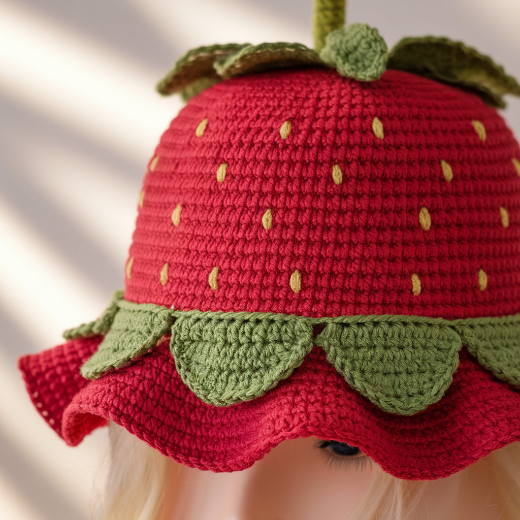 2. Crochet Strawberry Inspired Ruffles Bucket Hat Pattern